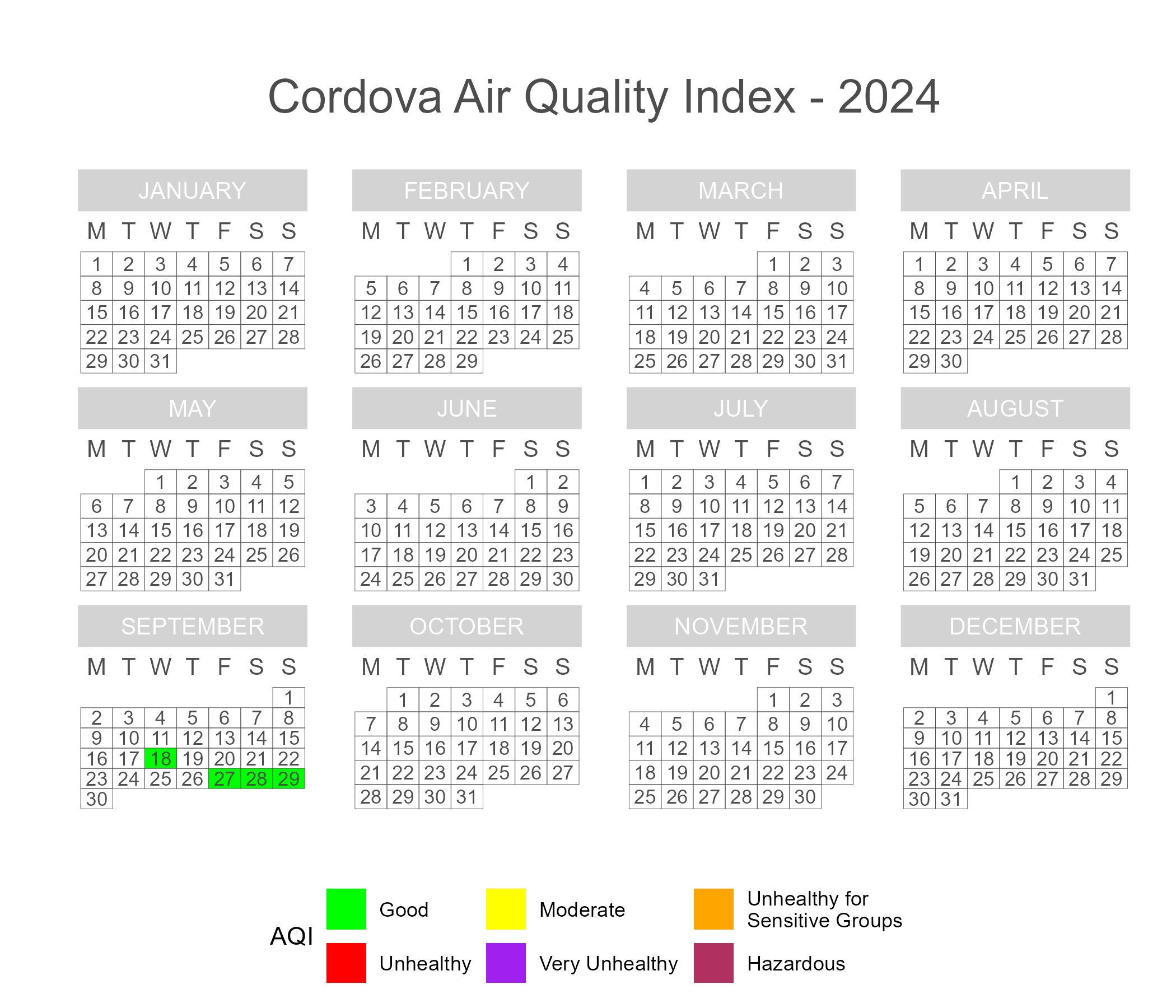 Figure 49 and Figure 50 PM2.5 Calendar Plots for Cordova