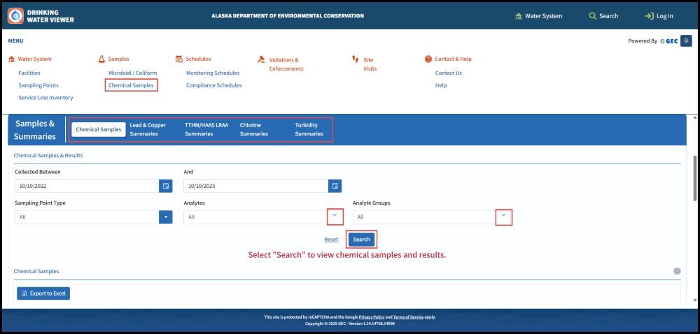 Drinking Water Viewer is a tool that allows anyone to view data the Drinking Water Program maintains on active public water systems (PWS) in Alaska. The information includes: