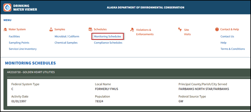 Drinking Water Viewer provides public access to public water system information from the Drinking Water Program's database, including facility information and sampling points. It allows searches for individual water system information, or information on a wider group of water system on specific topics.