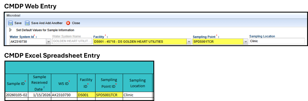 If you're unable to locate the needed Facility ID/Sample Point ID information or if this information isn't listed in CMDP correctly, please contact the DEC CMDP helpdesk (dec.cmdpsupport@alaska.gov) or the regional EPS for assistance.