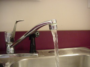 Disinfect the faucet by dipping the end in a cap full of bleach before running the water. This is optional but is a good idea.