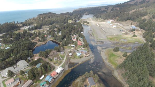 Drone imagery of Seldovia showing how interconnected Seldovia is with the waterways that are in and around the coastal community. Photo by DEC staff.